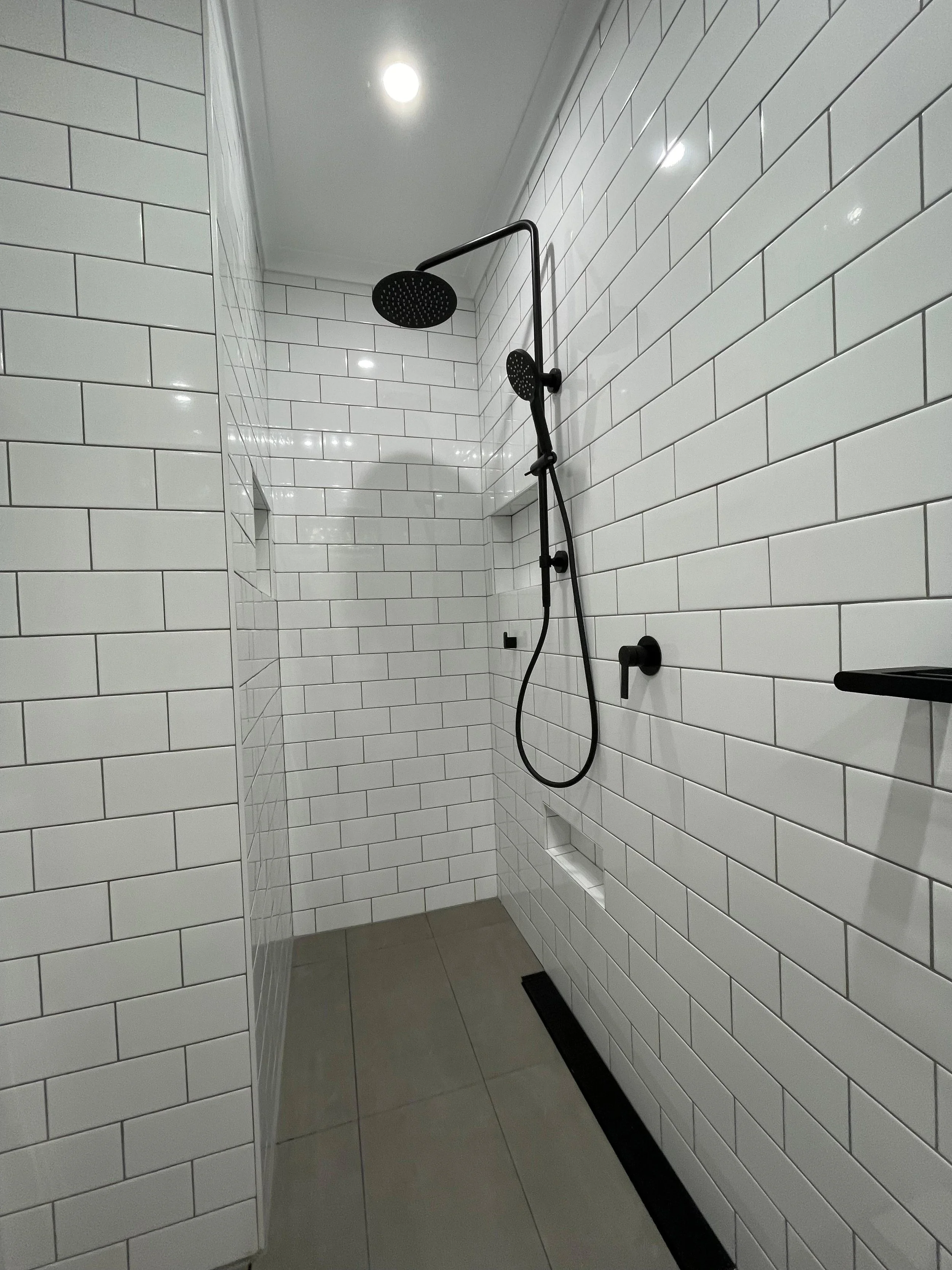Gilmore, ACT 2905Experience the perfect blend of classic charm and modern sophistication with our latest bathroom renovation. This stunning transformation features crisp white subway tiles, creating a clean and timeless backdrop that enhances the spaciousness of the room. The sleek black fixtures, including a contemporary rainfall showerhead and matching tapware, add a touch of elegance and contrast beautifully with the white tiles.